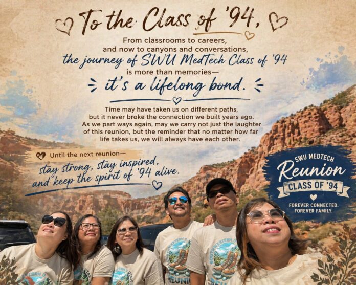 To my SWU College of Medical Technology Batch of 1994 family: thank you for the laughter, the stories, the warmth, and the reminder that some bonds remain strong no matter how many years pass. See you in San Antonio, Texas. And please, someone remind me to pack extra memory cards, comfortable shoes, and maybe a little more Salonpas. For formal purposes, of course.